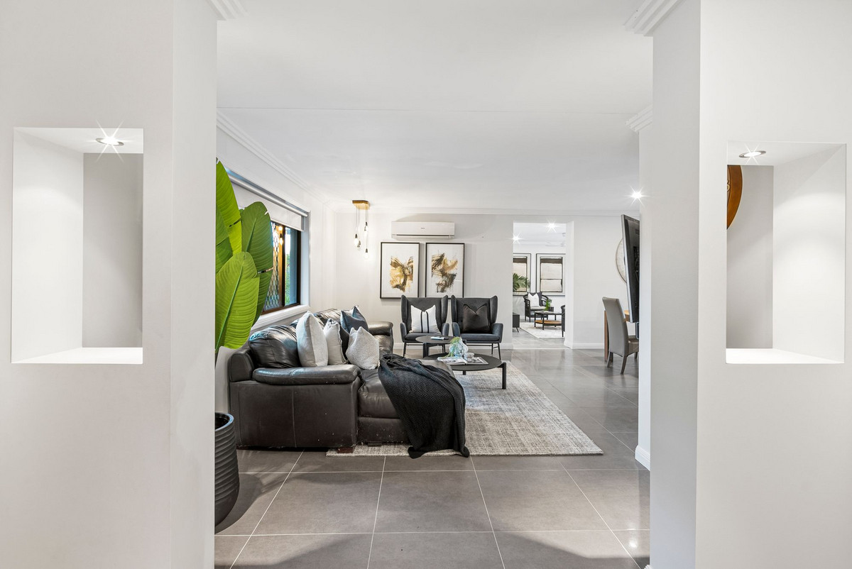 Inside, the home features three separate living areas, providing flexibility for families of all sizes. Four spacious bedrooms all include ceiling fans and built-in robes, while the master suite is a private retreat complete with air-conditioning, walk-in robe, and stylish ensuite. The home has been tastefully renovated throughout, showcasing contemporary finishes and a bright, open-plan design.