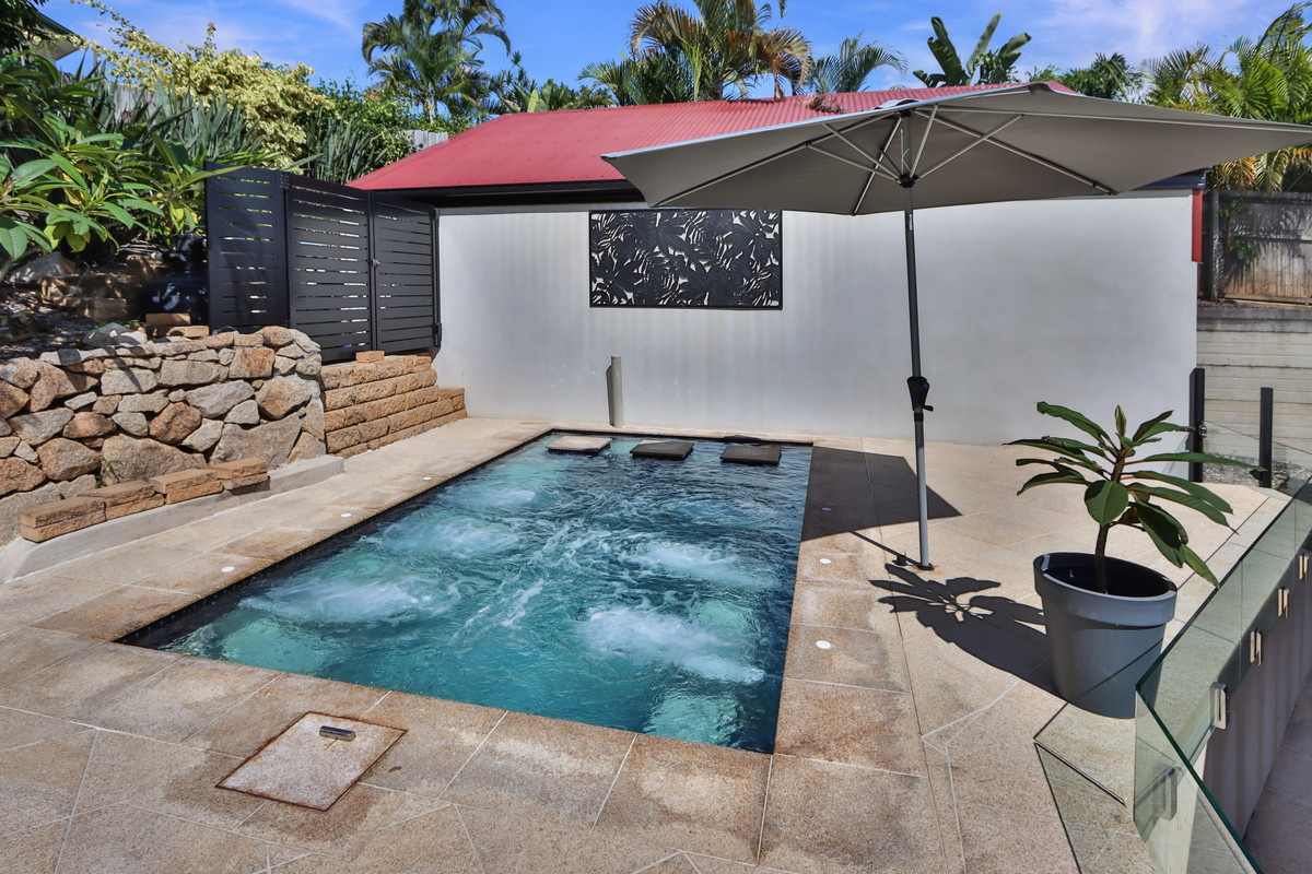 • Low-maintenance mineral salt plunge pool, spa feature, lights + pre-plumbed solar & water feature — swim & relax minus the hassle.