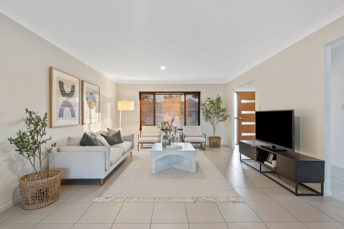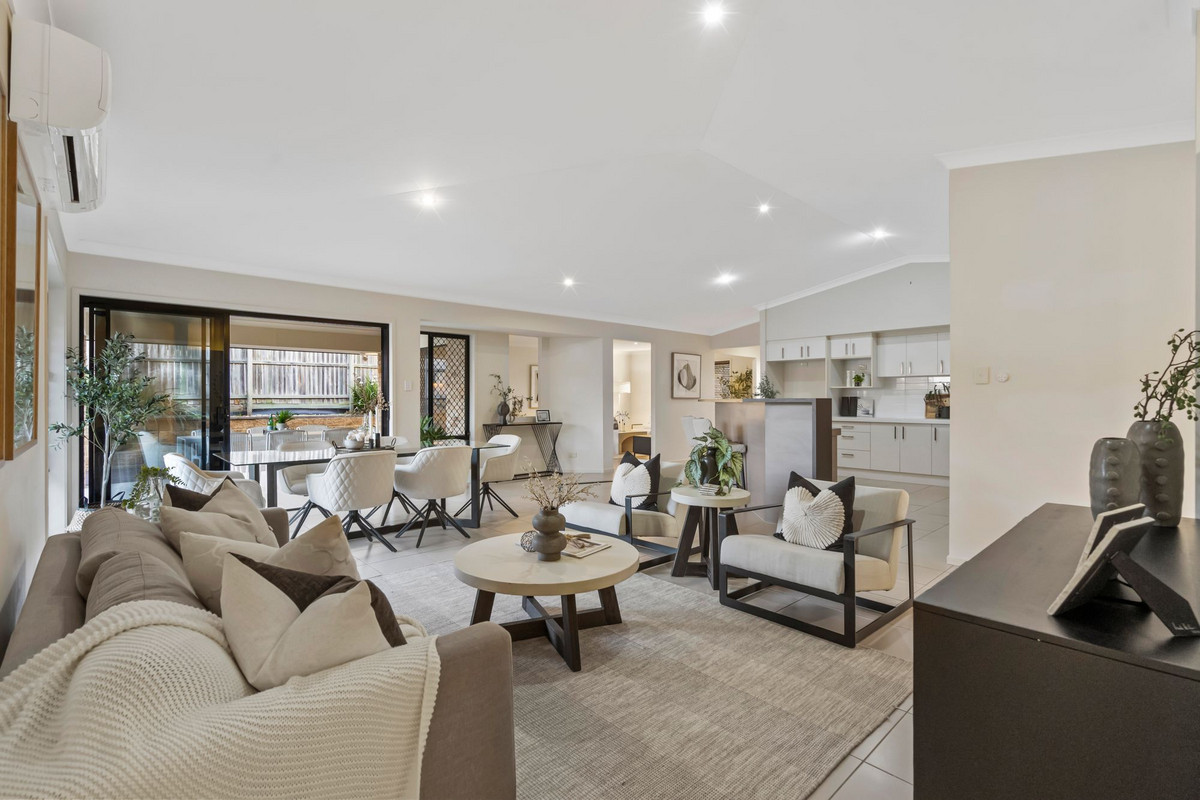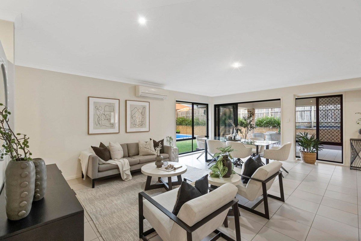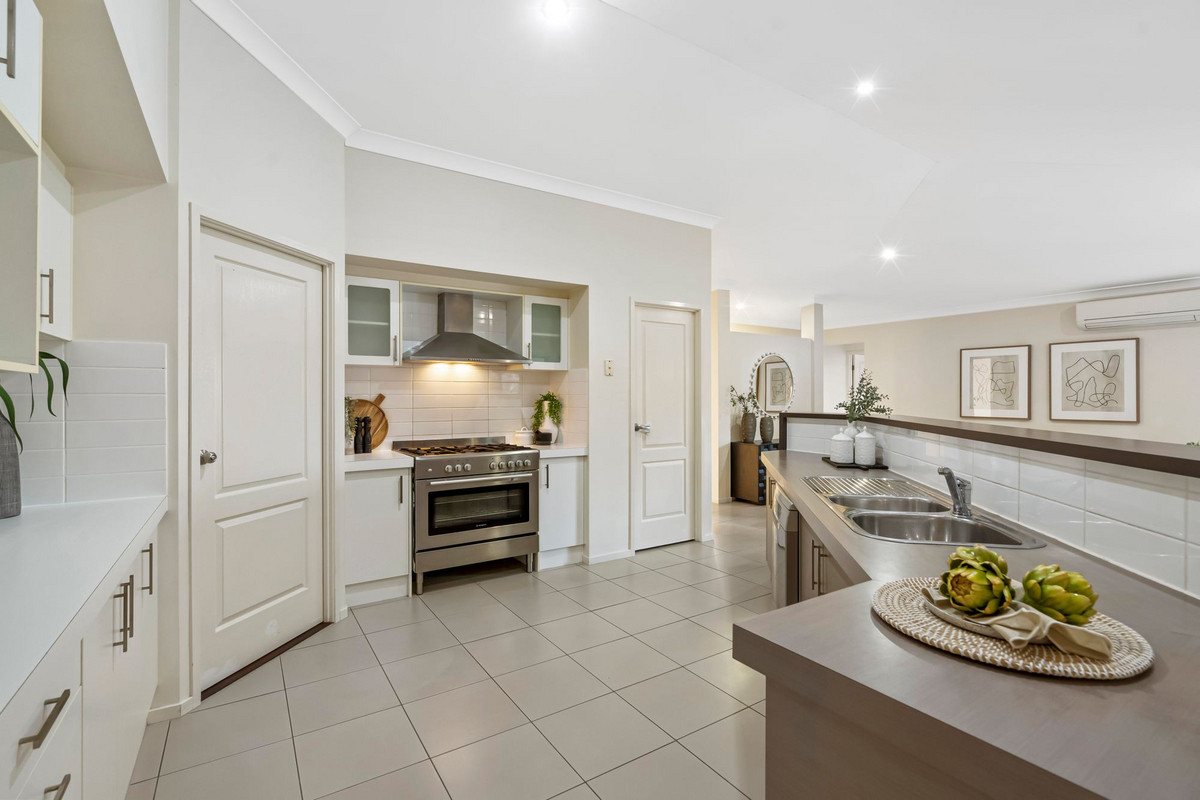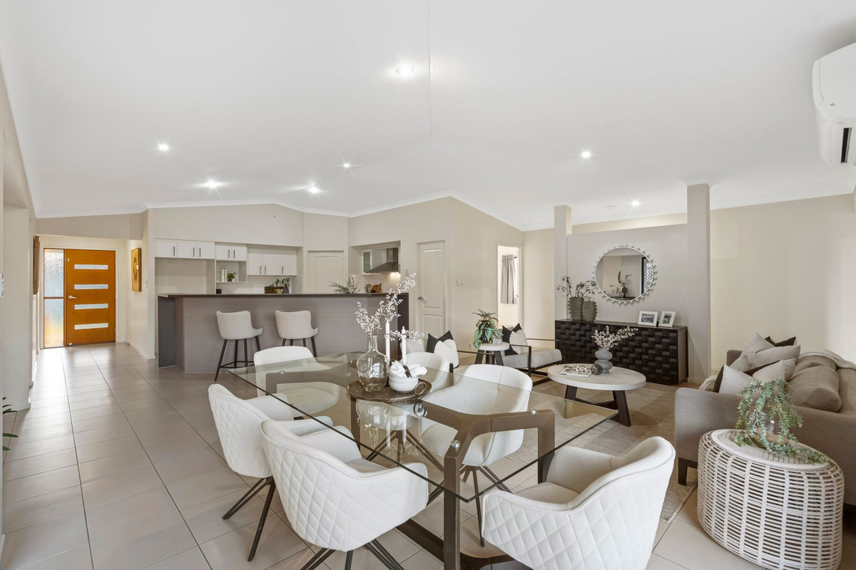 Step inside and enjoy the light-filled open plan layout, where the contemporary kitchen takes centre stage with a 900mm gas oven and cooktop, dishwasher, and walk-in pantry—perfect for the home chef. The adjoining dining and living area feature air-conditioning for year-round comfort, seamlessly flowing to the covered outdoor entertaining area. Designed with versatility in mind, the home also boasts a second living area, giving families extra space to relax, work or play.